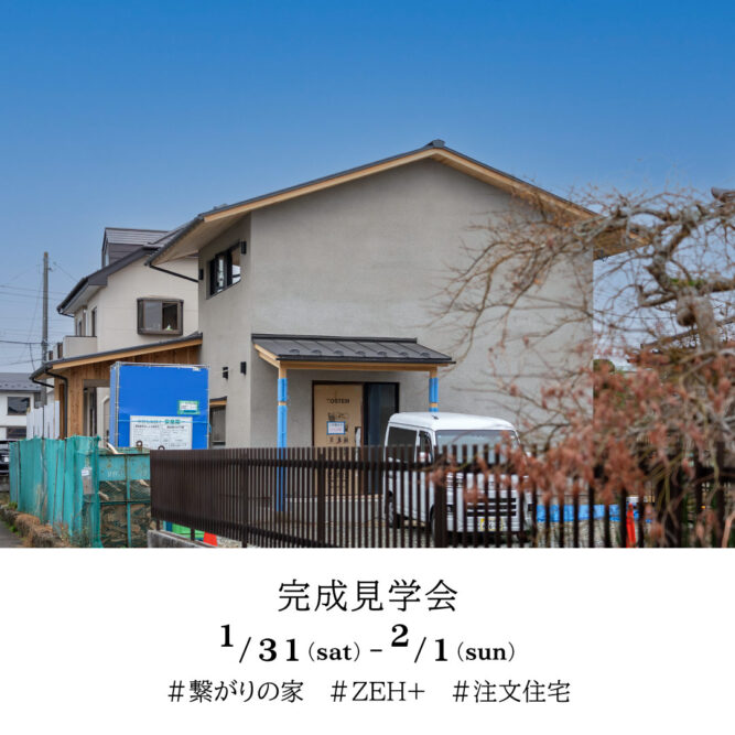 完成見学会|繋がりの家 この度お施主様のご厚意により、2026年1月31日~2月1日の2日間限定で「繋がりの家」の完成見学会を開催いたします。 ■ 見どころポイント 1.2層の断熱・気密性を高め、ZEH+の基準を満たした … 続きを読む 宮城県|完成見学会「繋がりの家」